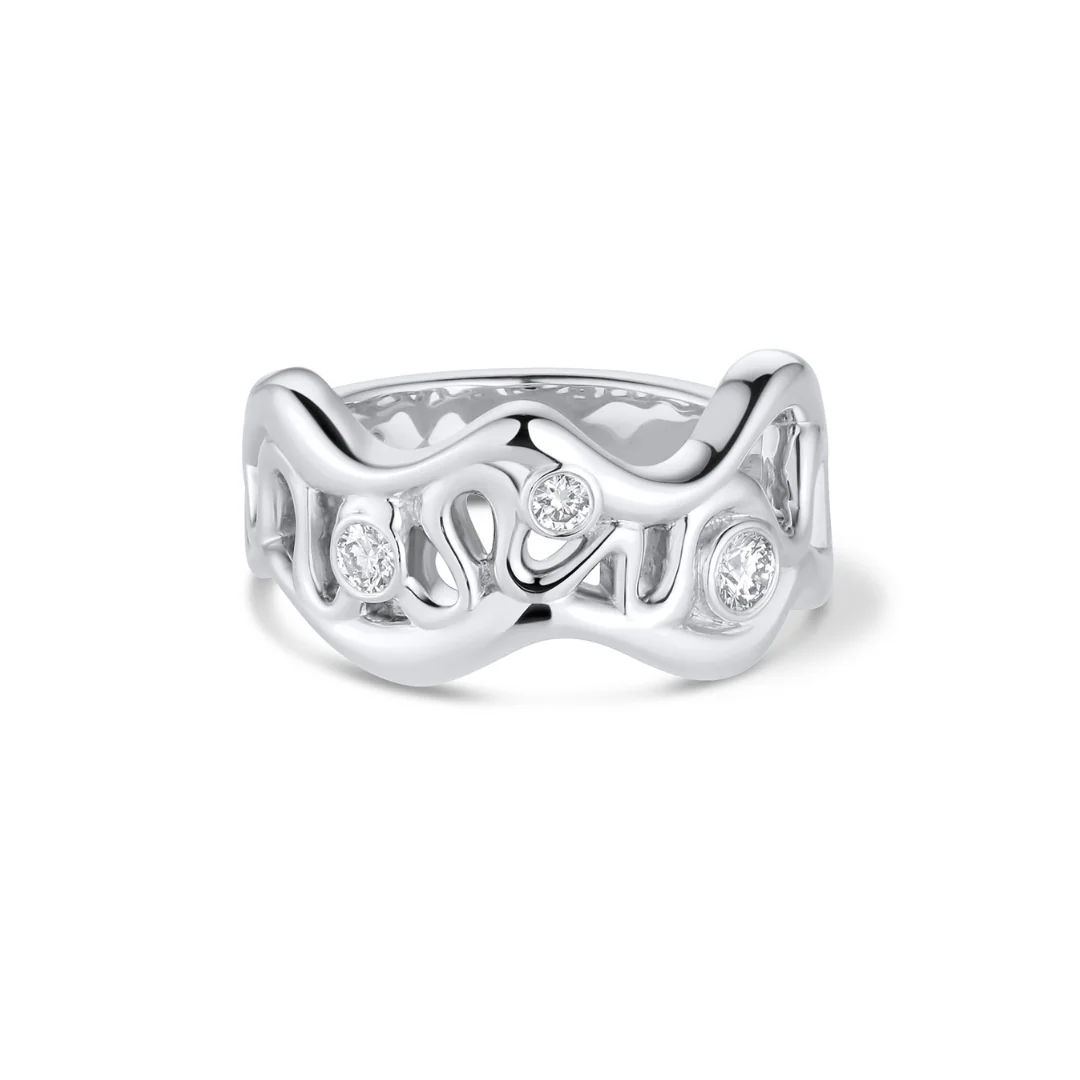 Inspired by the stained glass play found within cathedral walls that let bits of light in, this Altar White Diamond band makes for a funky engagement ring or unique wedding band.
