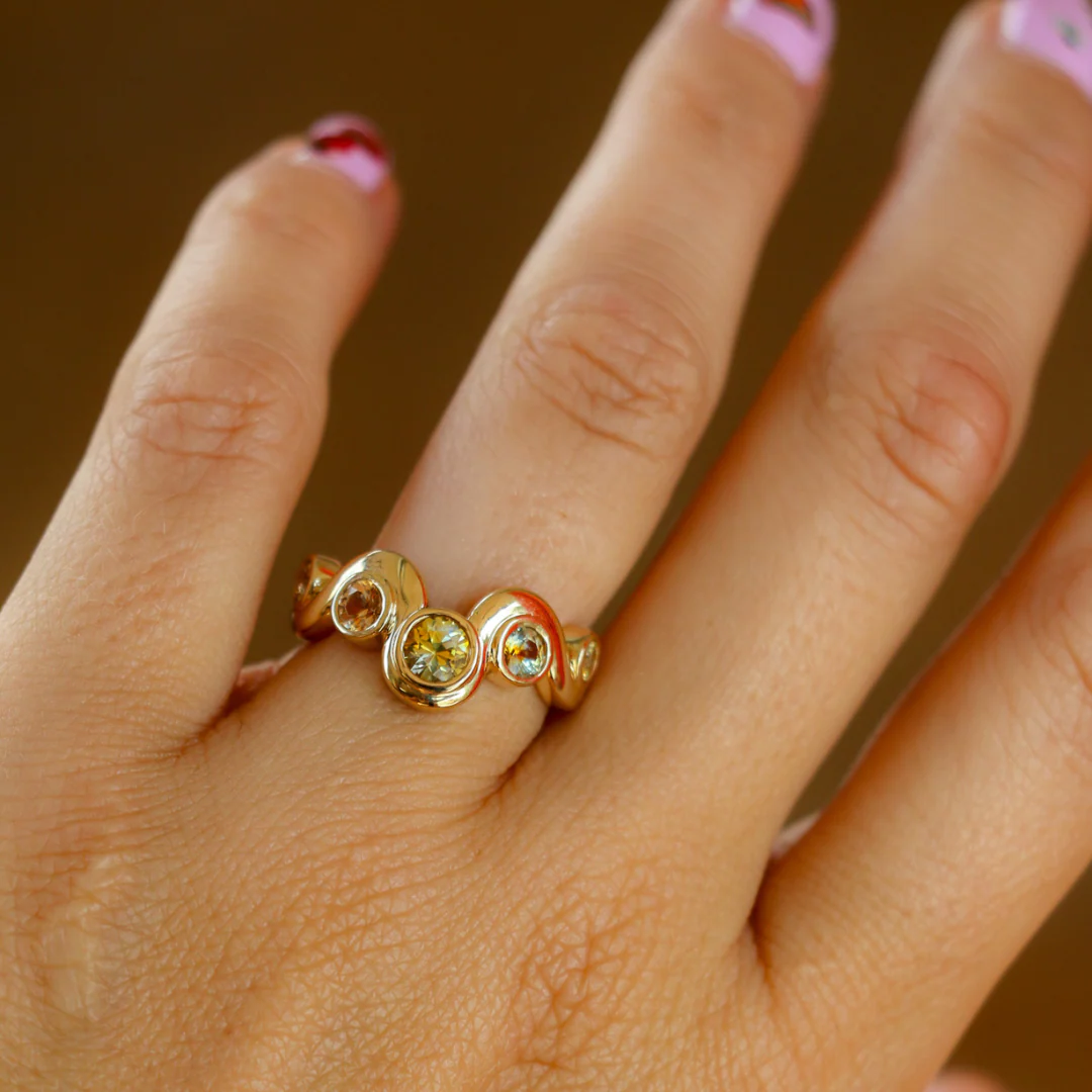 This beautiful Montana sapphire wedding band was designed for our client to complement the Sedona scenery.