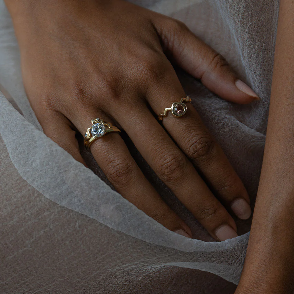 This funky tourmaline ring features a .39ct peach Namibian tourmaline and makes for the perfect alternative engagement ring or right hand ring.