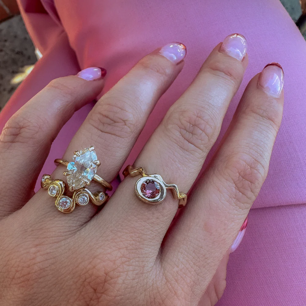 We love a flowy, diamond-heavy design and the Ribbon band is no exception. She's sparkly, drama, and works with so many different styles.