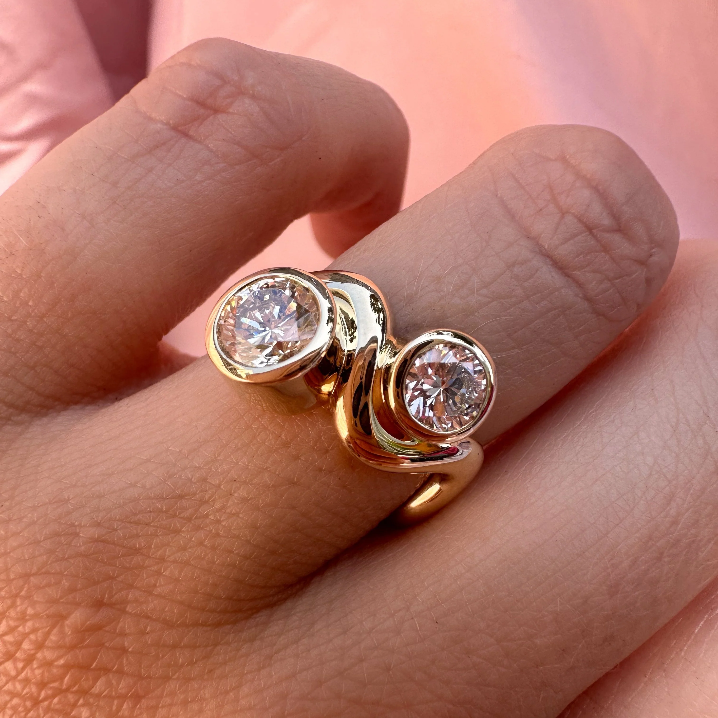 White Diamond Wavy Toi et Moi - Custom Design